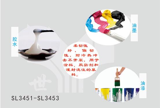 世林膠業(yè)SL3453 系列聚氨酯改性環(huán)氧樹脂;產(chǎn)品規(guī)格為10KG塑料桶包裝,粘度較低,操作方便,貯存穩(wěn)定性好,且固化后具有很好的韌性,改善了以往環(huán)氧樹脂缺乏韌性,易脆的性質(zhì)?梢院痛蠖鄶(shù)胺類等固化劑配合使用。在膠粘劑、涂料和復(fù)合材料領(lǐng)域?qū)⒕哂休^為 廣泛的應(yīng)用前景。目前該產(chǎn)品已在膠粘劑和涂料領(lǐng)域有了良好的應(yīng)用效果。