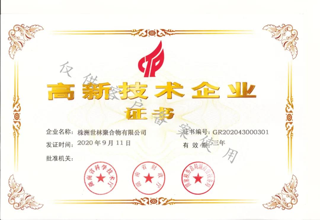 祝賀株洲世林聚合物有限公司獲得“高新技術(shù)企業(yè)”