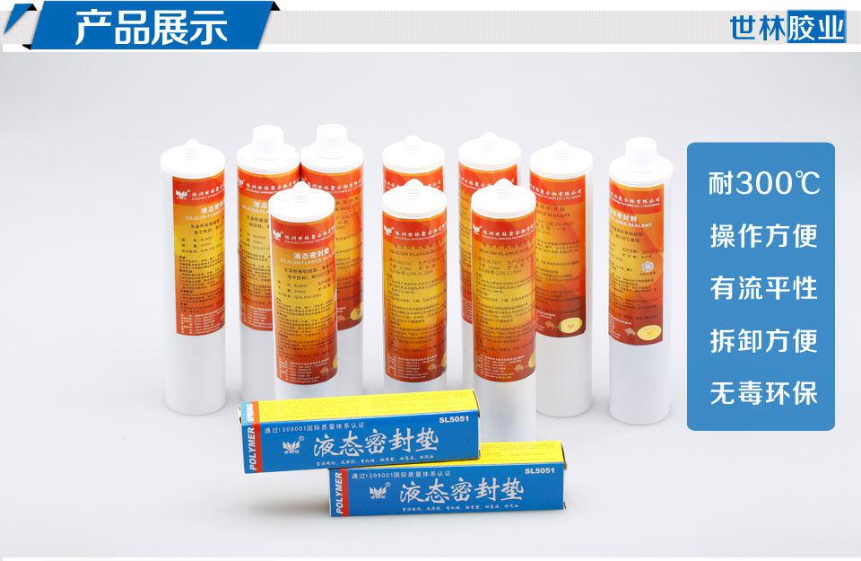 株洲世林膠業(yè)有一款SL5051耐300度液態(tài)密封膠,它是單組份有機(jī)硅密封膠,適用于飛機(jī)、汽車、摩托車等發(fā)動(dòng)機(jī)、水泵、閥門、齒輪箱、減速箱、真空泵、空壓機(jī)等有關(guān)結(jié)合面,密封效果好,,耐水、耐汽油、耐機(jī)油、耐老化、具有優(yōu)良的耐介質(zhì)性能,室溫下即可硫化,使用起來(lái)非常方便。使用溫度為-60℃~+300℃,短時(shí)可達(dá)+350℃。目前已大批量的使用在了汽車發(fā)動(dòng)機(jī)制造廠和航空發(fā)動(dòng)機(jī)上。
